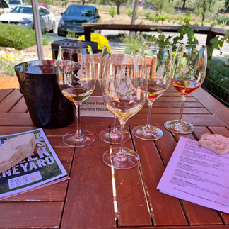 I loved my tasting at Tablas Creek. The vibe is chill and comfortable. I sat at a table with an umbrella on the patio overlooking the vineyard. There was no rush, water was provided for hydration, and the staff was helpful in explaining the wines in the flight. One fun bonus was getting a few extra pours to sample wines from different years of vintage to compare to wines I enjoyed in my flight. It was interesting to taste the same wines from different years and find them so different! So much can influence a vintage from the soil to the weather that year. The experience was educational with no pressure. In the end, I bought several bottles including a cute 375 ml ½ bottle to enjoy on my trip.
